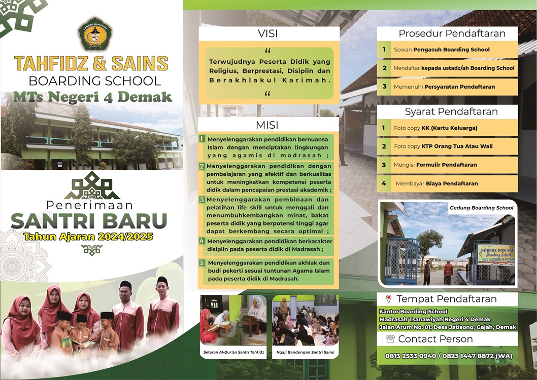 PENERIMAAN SANTRI BARU BOARDING SCHOOL TAHUN AJARAN 2024/2025